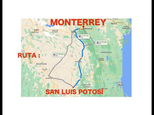 Tiempo de viaje de Monterrey a San Luis Potosí en auto